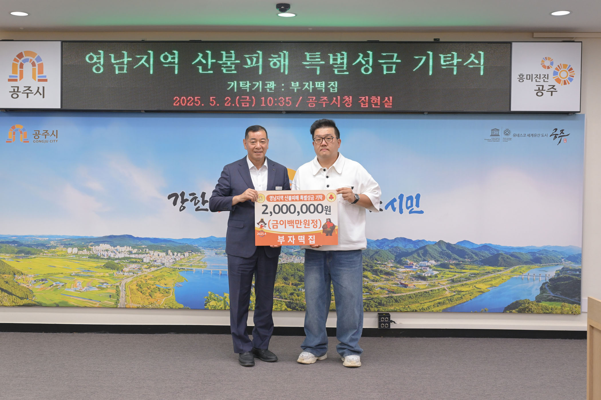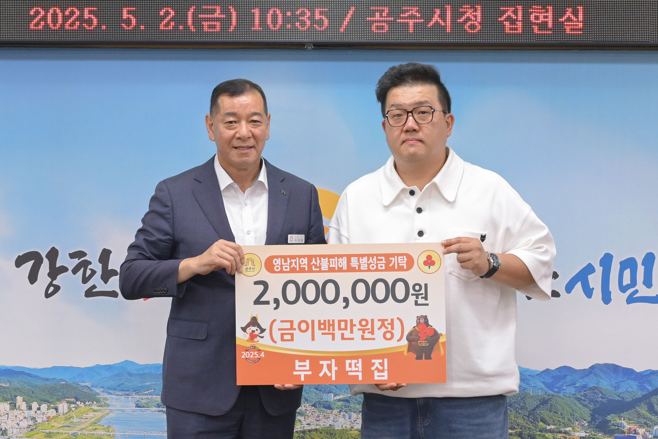 2025년 5월 2일 영남지역 산불피해복구 성금 기탁식 부자떡집 [집현실]